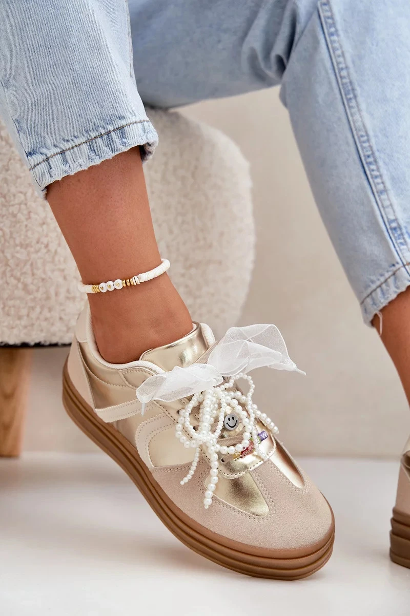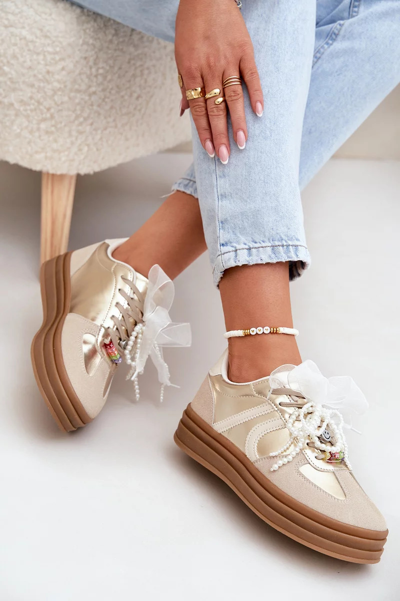 Dámské tenisky na platformě s ozdobami – béžovo-zlaté Vinness