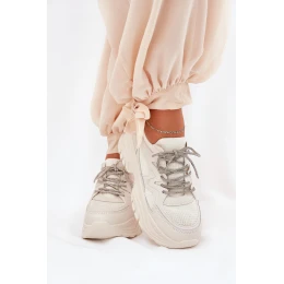 Dámské tenisky na platformě s ozdobným šněrováním béžové Evalianne