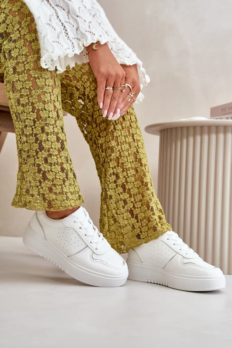 Dámské tenisky na platformě s ozdobným šněrováním bílé Mistra