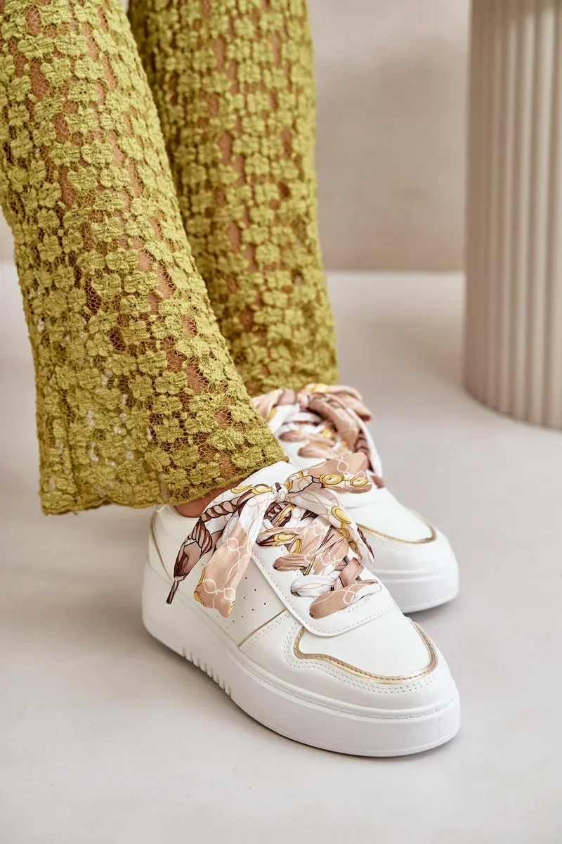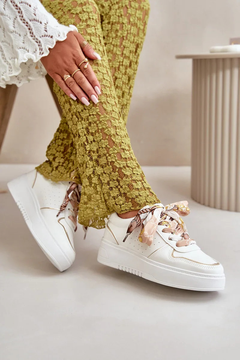 Dámské tenisky na platformě s ozdobným šněrováním bílé Mistra