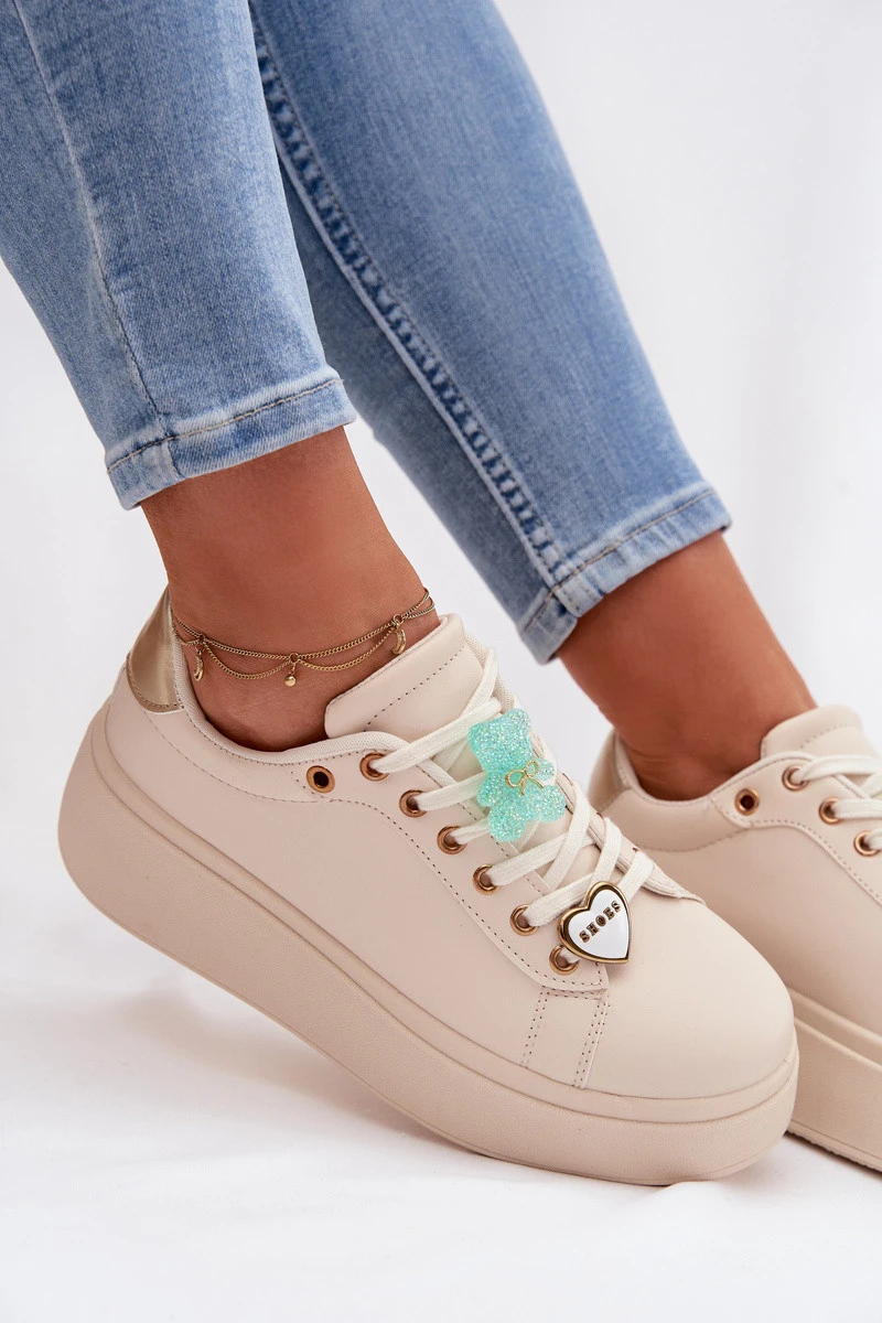 Dámské tenisky na platformě s přívěsky Medvídek Srdce Béžové Selorissa