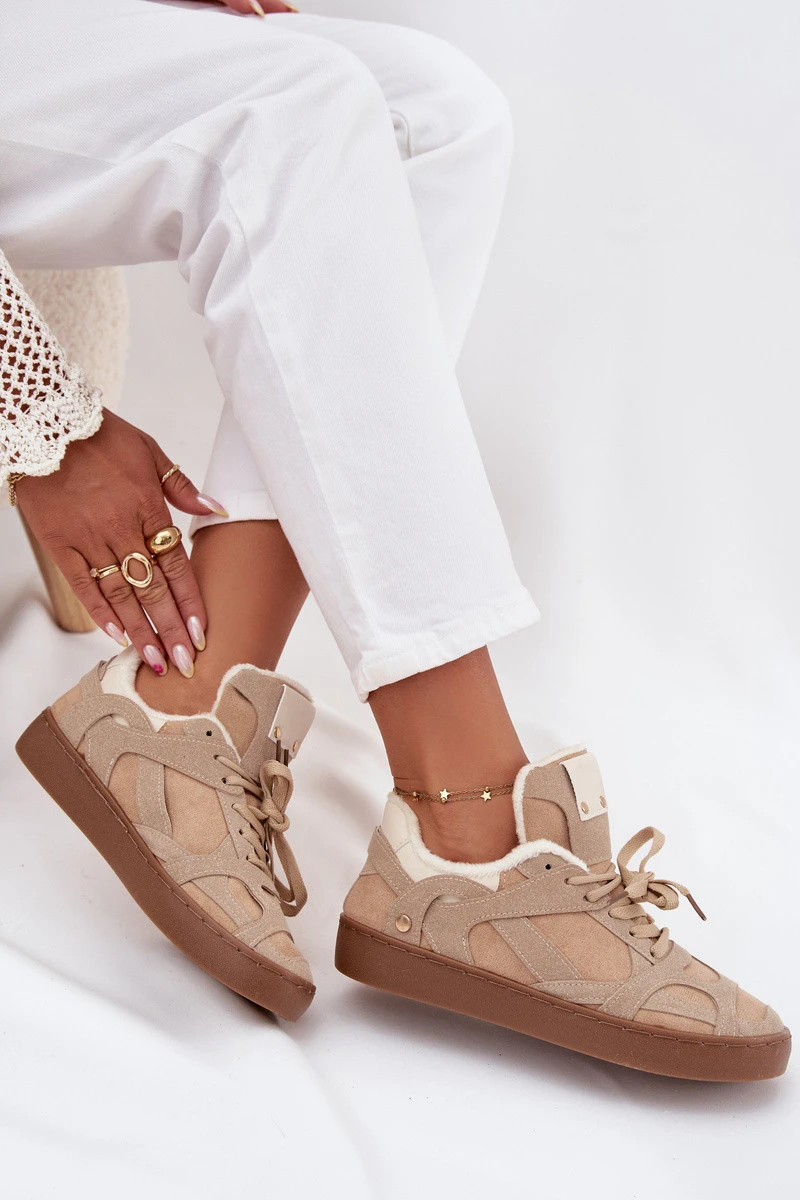 Dámské tenisky na platformě s vyteplením s kožešinou béžové Solvia