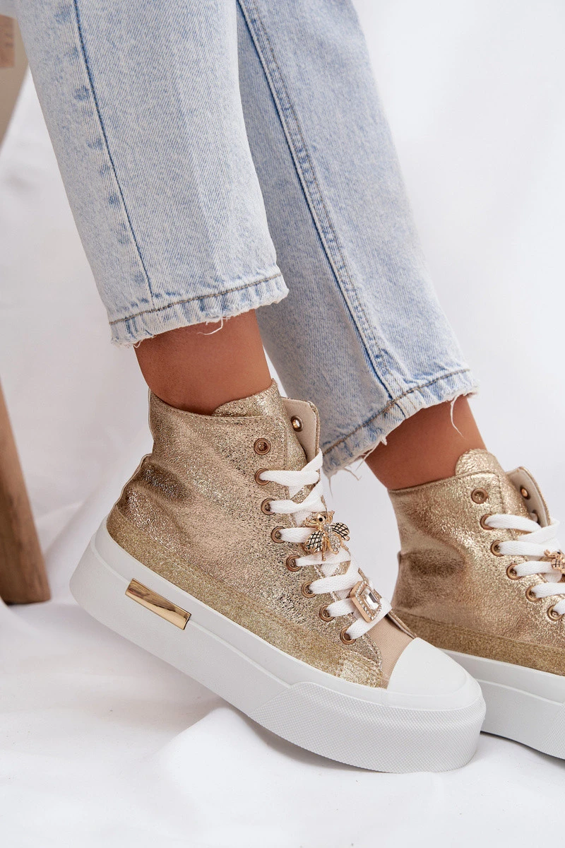Dámské tenisky na platformě se zlatými přezkami model 21919398 - Boto