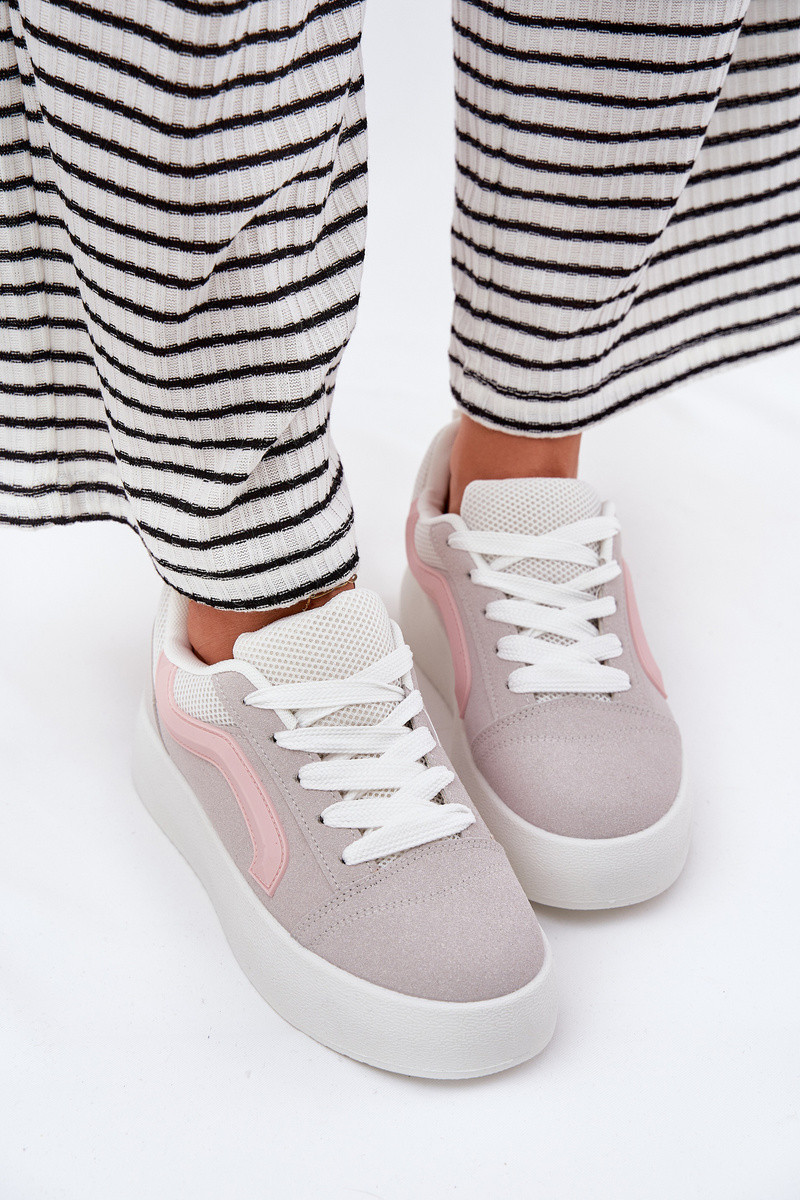 Dámské sneakersy z eko semiše jsou vynikající volbou na každý den, spojující styl a komfort. Uloženy na platformě, zajišťují pohodlí a dodatečnou stabilitu. Zaoblené špičky zaručují volnost pohybu a měkká stélka pokrytá materiálem se stará o pohodlí po celý den. Klasický design těchto sneakersů je činí ideálními pro každodenní stylizace, nabízející jak funkčnost, tak módní vzhled. Při výběru velikosti se řiďte tabulkou velikostí.