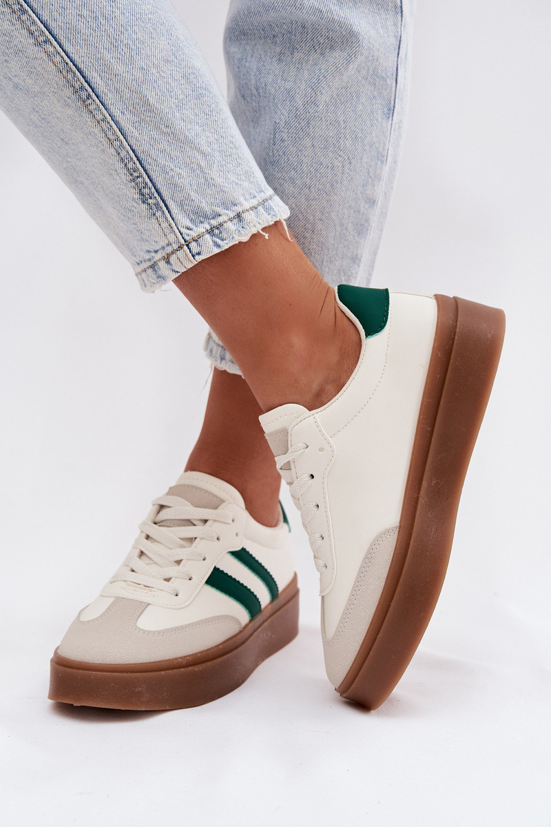 Dámské tenisky na platformě z eko kůže – bílo-zelené Elaraven