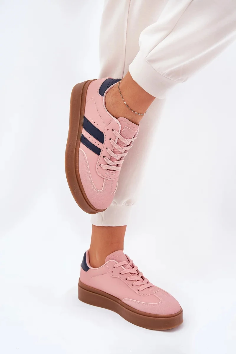 Dámské tenisky na platformě z eko kůže Ediriella – růžové