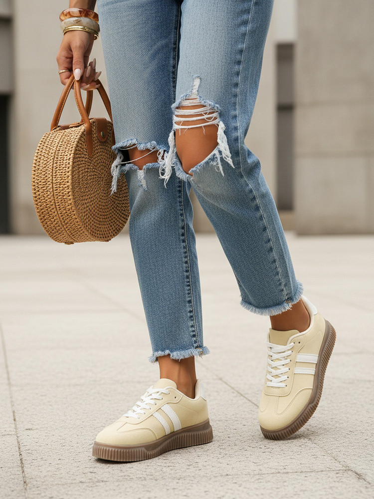 Tenisky se hodí k džínům, látkovým kalhotám i ležérním šatům a platforma vám umožní zůstat v pohodlí i při delším nošení bez ohledu na tempo dne.