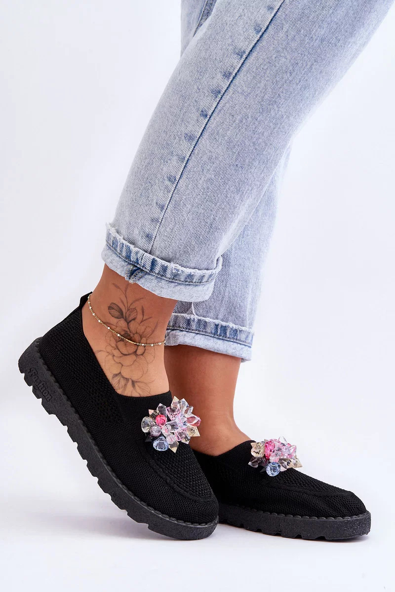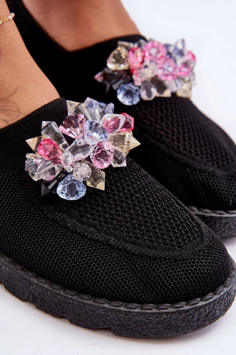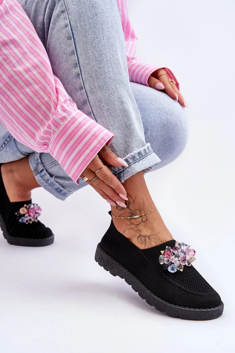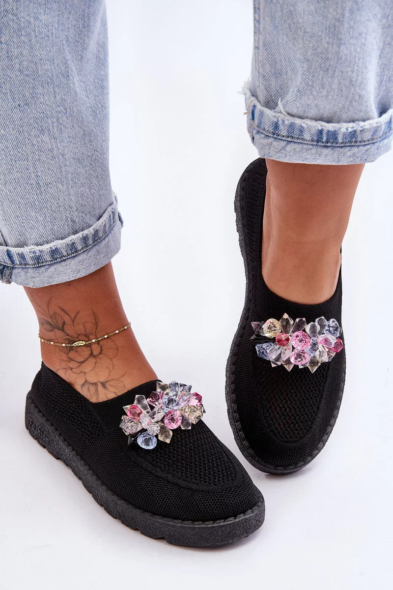 Klasické tenisky byly obohaceny o krásné kameny ve různých barvách. Svršek je vyroben z prodyšného textilního materiálu. Vložka v této obuvi je vyrobena ze směsi materiálu a pěny. Tenisky jsou ukotveny na platformě a plochém podpatku. Ideální model pro mnoho stylizací! Při výběru velikosti se řiďte tabulkou velikostí.