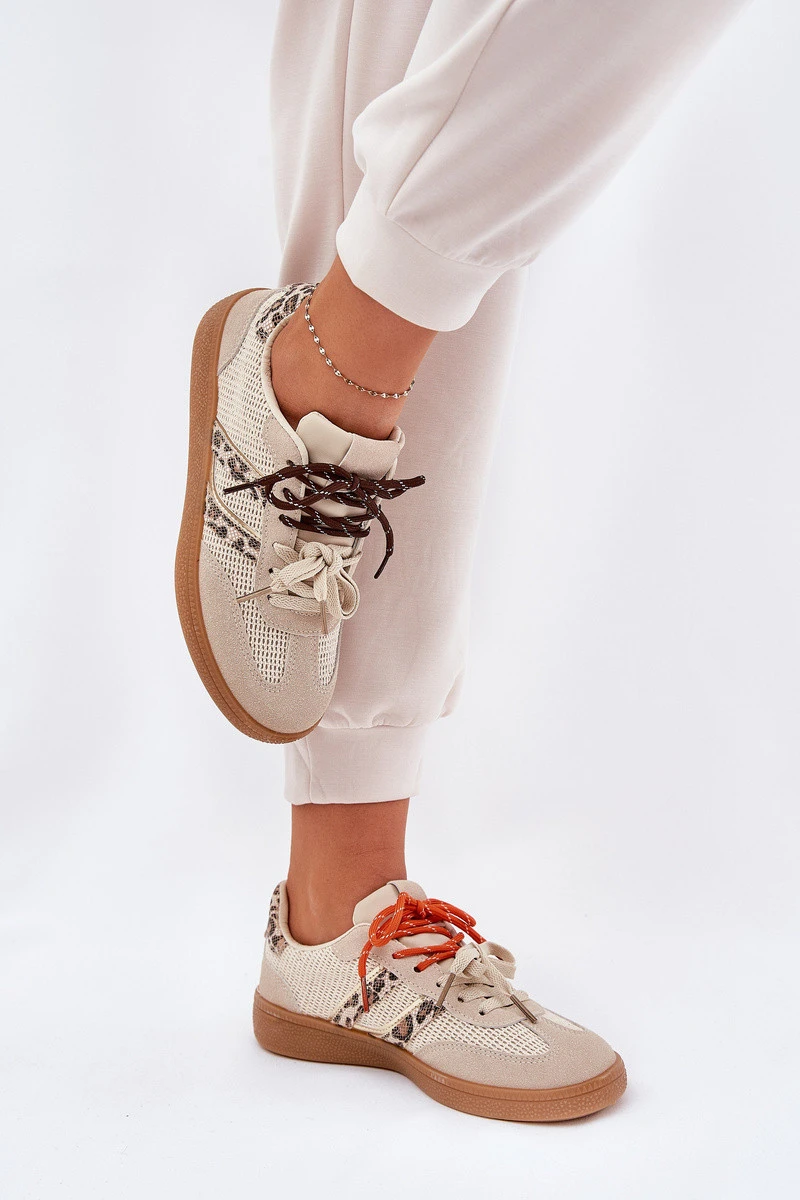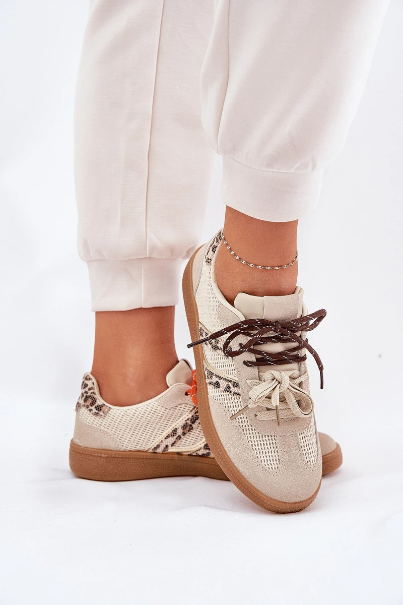 Dámské Tenisky S Dvojitým Šněrováním Leopardí Béžové Ollabes