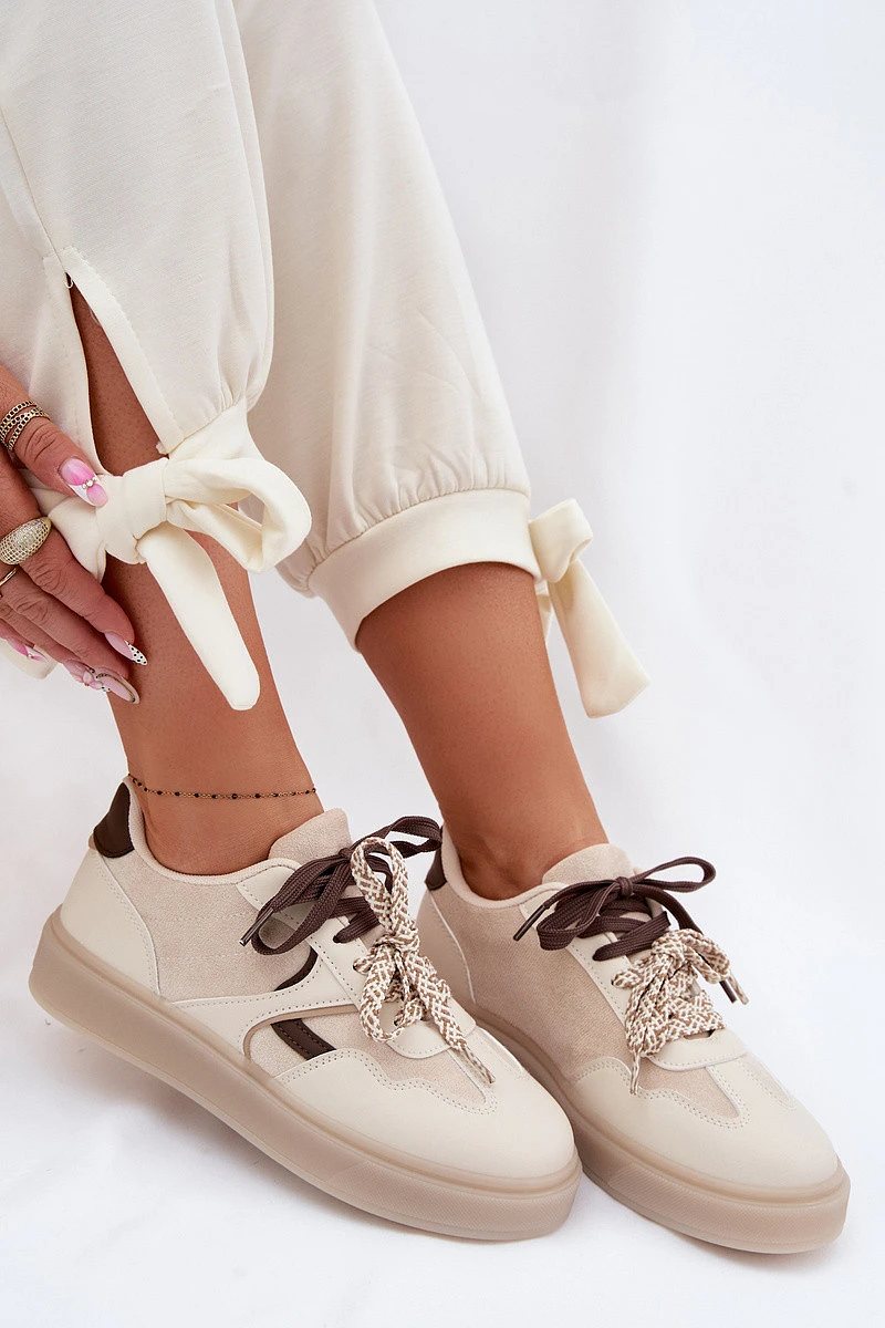 Dámské tenisky s dvojitými šněrováním světle béžové model 22095300 - Boto