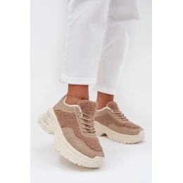 Dámské tenisky s krystaly a kožíškem béžové model 21706712 - Boto
