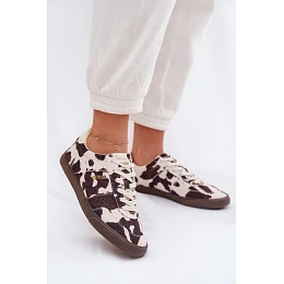 Dámské tenisky s nášivkami Big Star TT274369 Bílá-hnědé