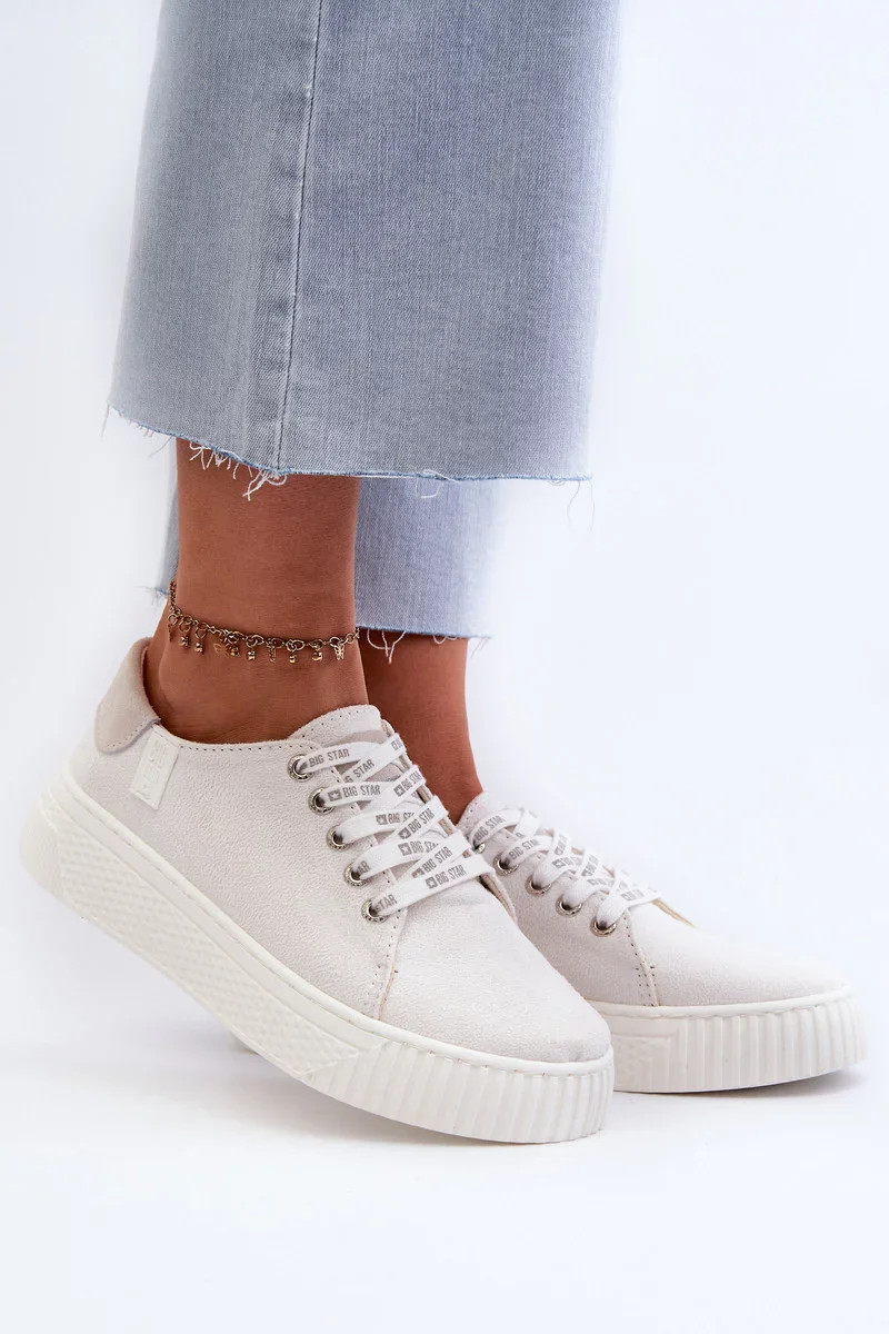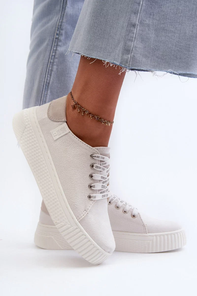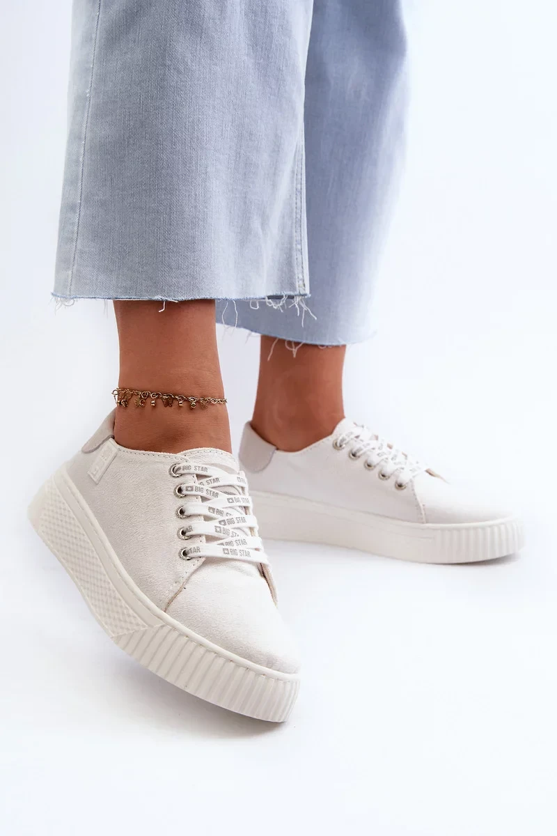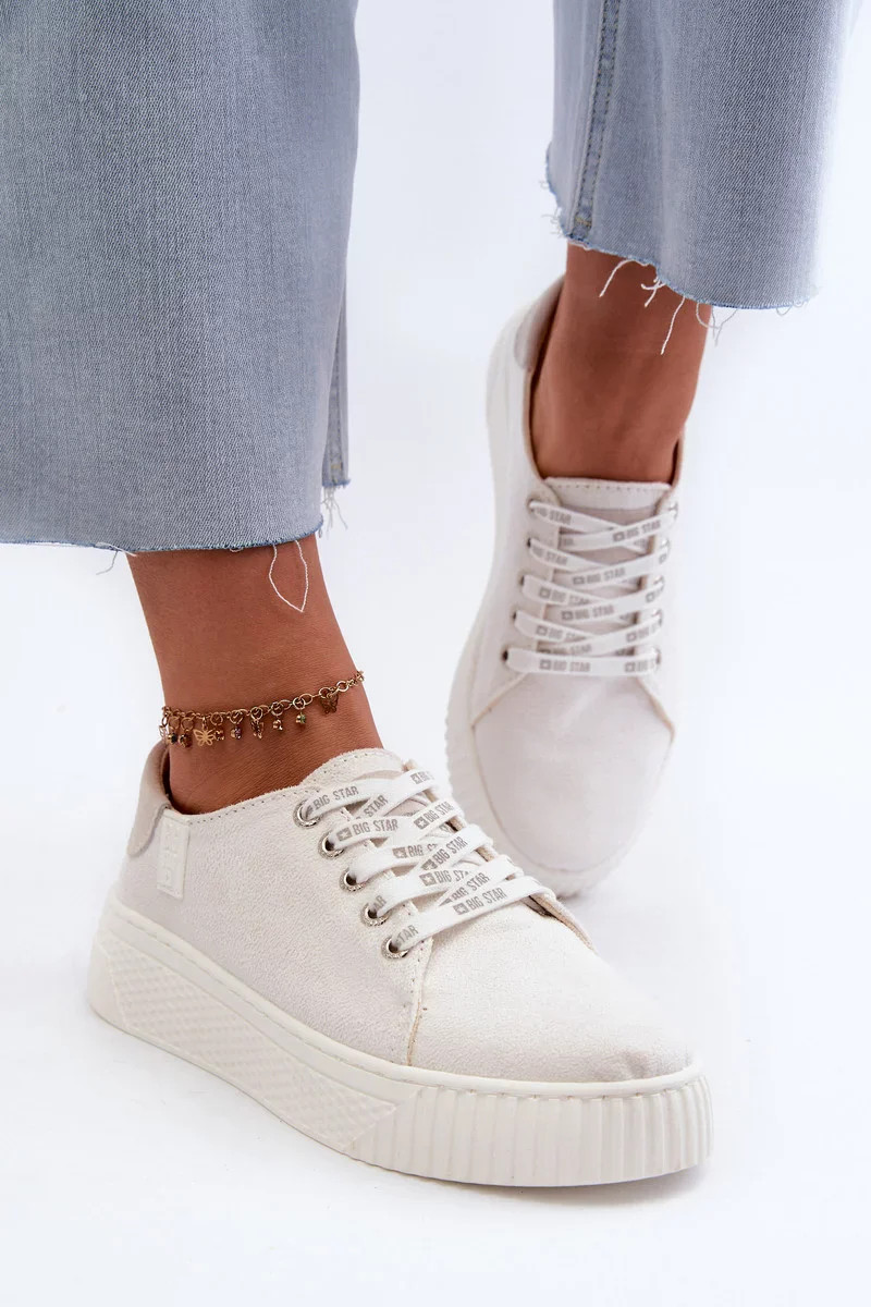 Elegantní lehkost a celodenní komfort. Tyto bílé dámské tenisky značky Big Star jsou skvělou volbou pro ženy, které hledají stylovou, a přitom pohodlnou obuv. Díky paměťové pěně ve stélce se perfektně přizpůsobí chodidlu a zajistí maximální pohodlí při každém kroku.