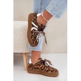 Dámské tenisky s panterím vzorem na platformě s ozdobami – hnědé Vinness