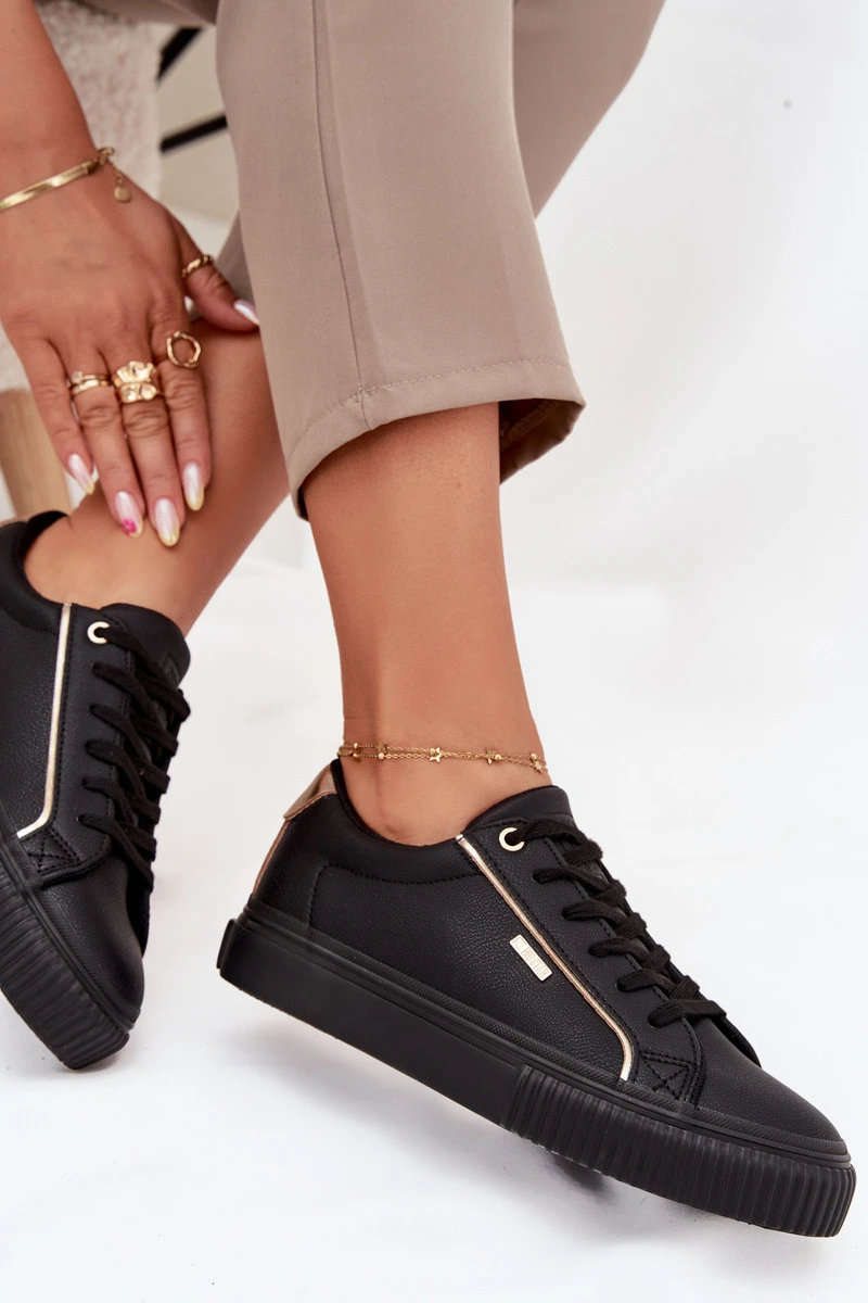 Dámské Tenisky Z Eko Kůže Big Star SS274025 Černo-Zlaté