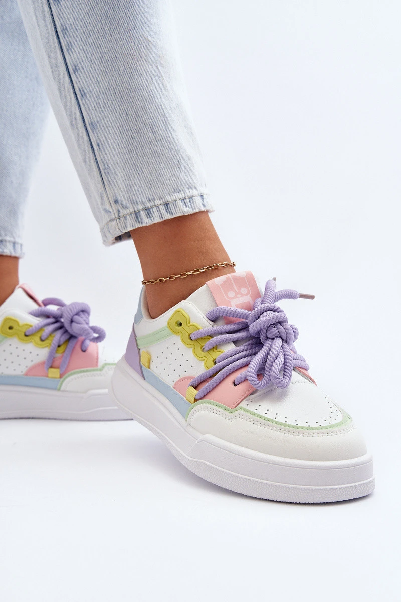 Moderní dámské tenisky vyrobené z eko kůže. Jejich klasický design a univerzální střih je dělají ideální volbou na každý den, bez ohledu na příležitost. Tenisky mají praktické šněrování na ploché tkaničky, které umožňuje perfektní přizpůsobení bot k vaší noze. Kromě toho měkká stélka vyrobená z pěny zaručuje vynikající pohodlí během nošení a možnost vytáhnout ji usnadňuje udržování hygieny bot. Tento model se skvěle hodí jak do každodenního volnočasového stylu, tak i do sportovnějších sestav. Při výběru velikosti se řiďte tabulkou velikostí.