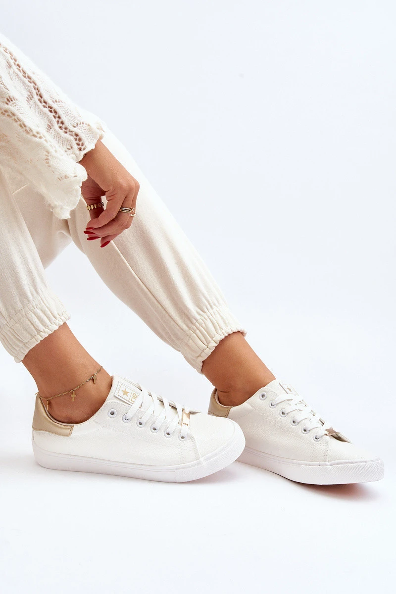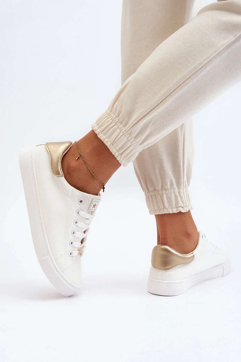 Klasické dámské tenisky vyrobené z ekologické kůže. Vsazené na podrážce z gumového materiálu. Zaoblené špičky. Klasický šněrovací model. Měkká materiálová stélka zajistí pohodlí i při nošení po celý den. Tento střih bude skvěle ladit s téměř každým outfitem s kalhotami a kraťasy. Určitě by neměly chybět ve vaší jarně letní garderobě! Při výběru velikosti se řiďte tabulkou velikostí.