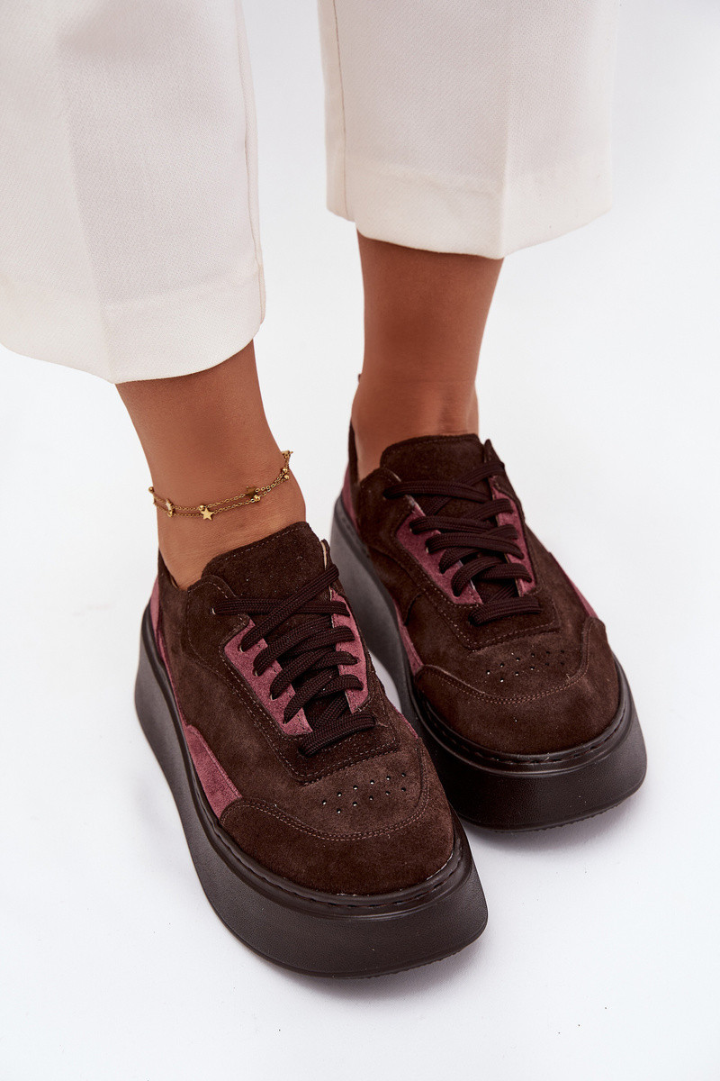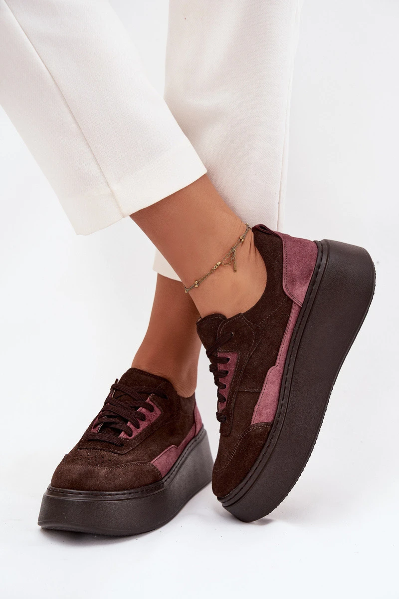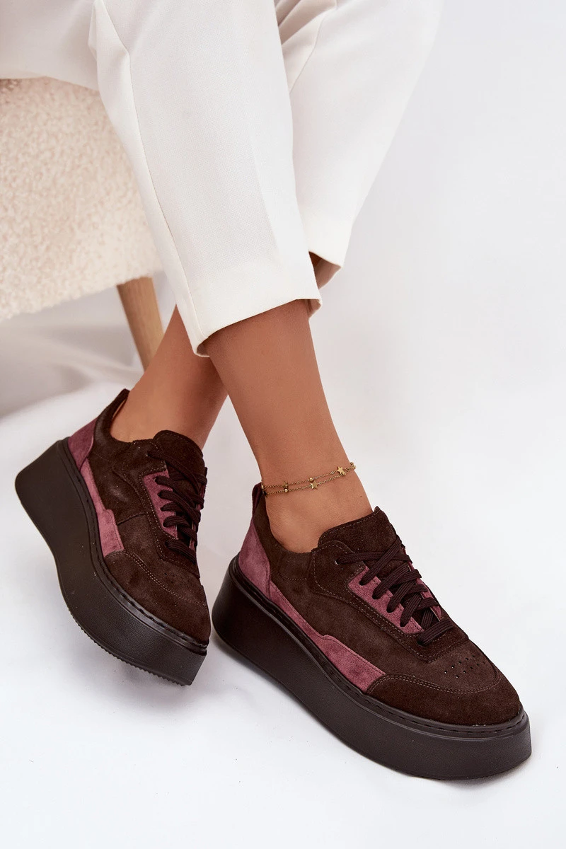 Dámské tenisky z pravé semiše na platformě model 21711179 čokoládové - Zazoo