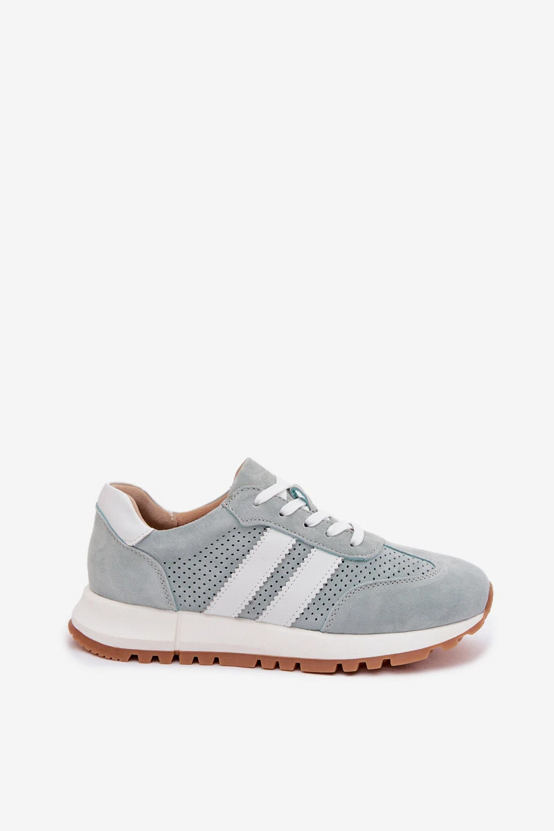 Dámské tenisky vyrobené z přírodního semiše jsou spojení pohodlí a nadčasového stylu. Dva pásky umístěné po stranách zdůrazňují jejich módní, sportovní charakter. Vnitřek je vybaven měkkou koženou vložkou, která zajišťuje pohodlí i při dlouhodobém nošení. Ideální volba na každý den – tenisky skvěle ladí jak s džínami, tak s kalhotami z materiálu, vytvářejíc stylové kombinace. Při výběru velikosti se řiďte tabulkou velikostí.