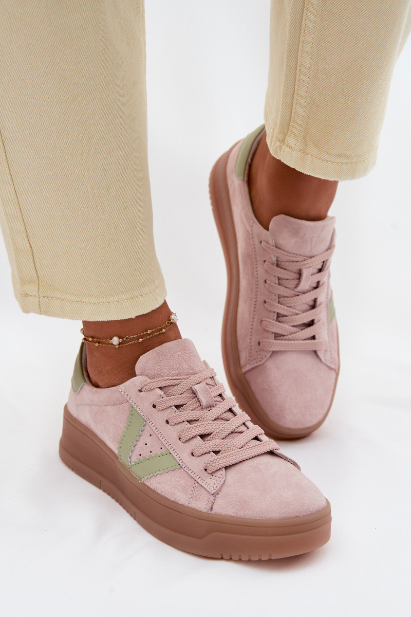 Přidání recenze k Dámské tenisky z přírodního semiše na platformě Vinceza 79597 růžové