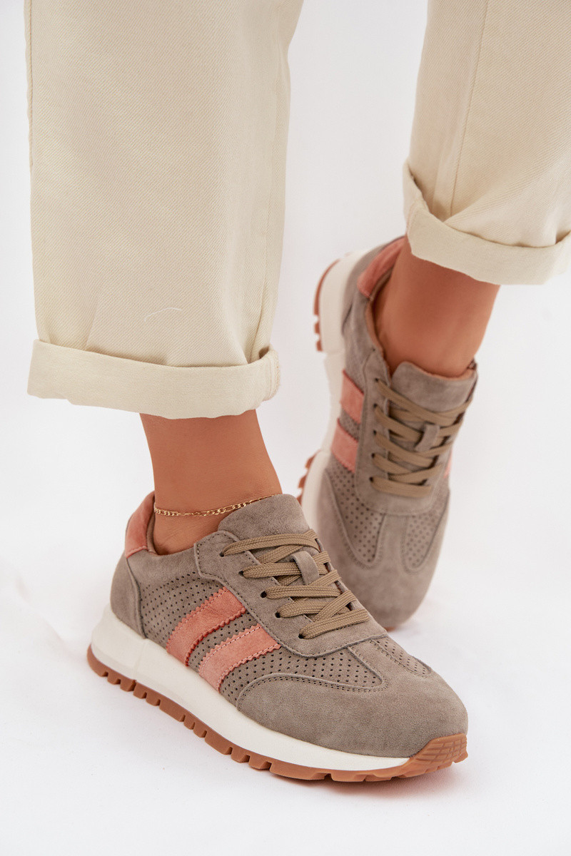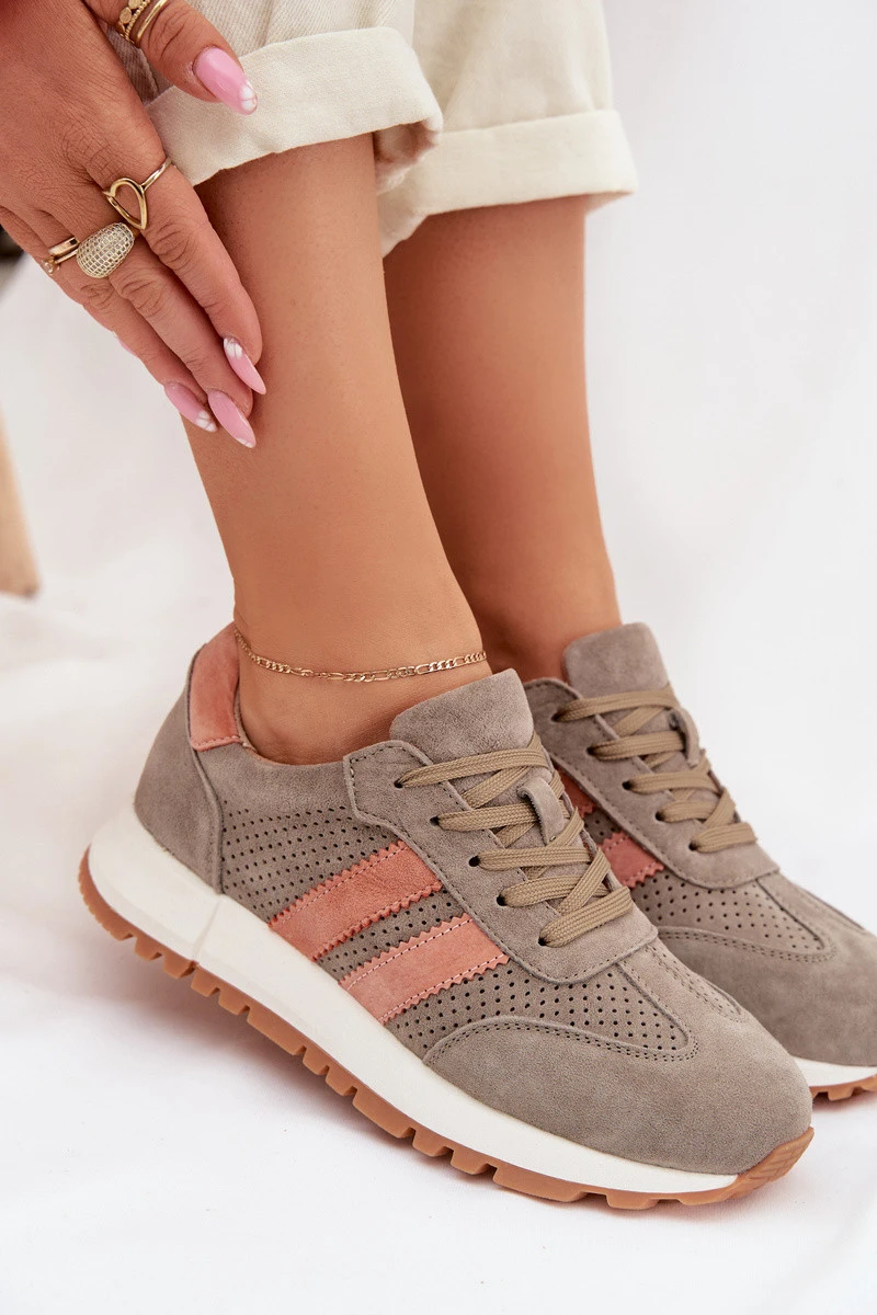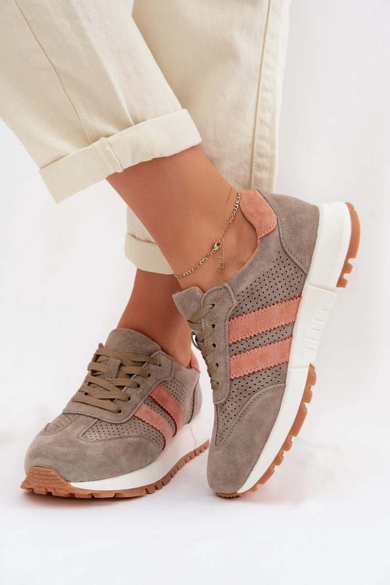Dámské tenisky vyrobené z přírodního semiše jsou spojení pohodlí a nadčasového stylu. Dva pásky umístěné po stranách zdůrazňují jejich módní, sportovní charakter. Vnitřek je vybaven měkkou koženou vložkou, která zajišťuje pohodlí i při dlouhodobém nošení. Ideální volba na každý den – tenisky skvěle ladí jak s džínami, tak s kalhotami z materiálu, vytvářejíc stylové kombinace. Při výběru velikosti se řiďte tabulkou velikostí.