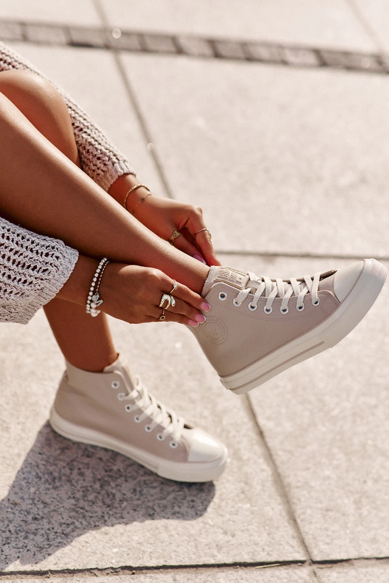 Dámské tenisky od značky BIG STAR s vysokým svrškem. Vyrobeno z eko kůže. Uloženo na gumové podešvi. Špičky jsou zaoblené. Uvnitř je zatepleno obuvnickou vlnou. Určitě se podívejte na celou naši kolekci obuvi značky BIG STAR. Při výběru velikosti se řiďte tabulkou velikostí.