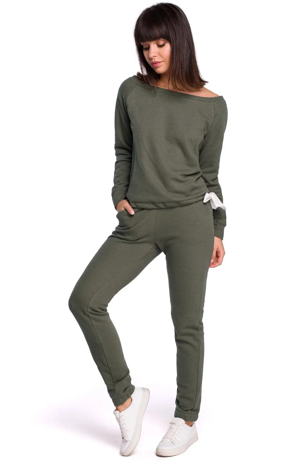 Produkt Dámské teplákové kalhoty model 13782159 - BeWear prodáváme v těchto velikostech: S-36a barvách olivovo zelená5903068434549