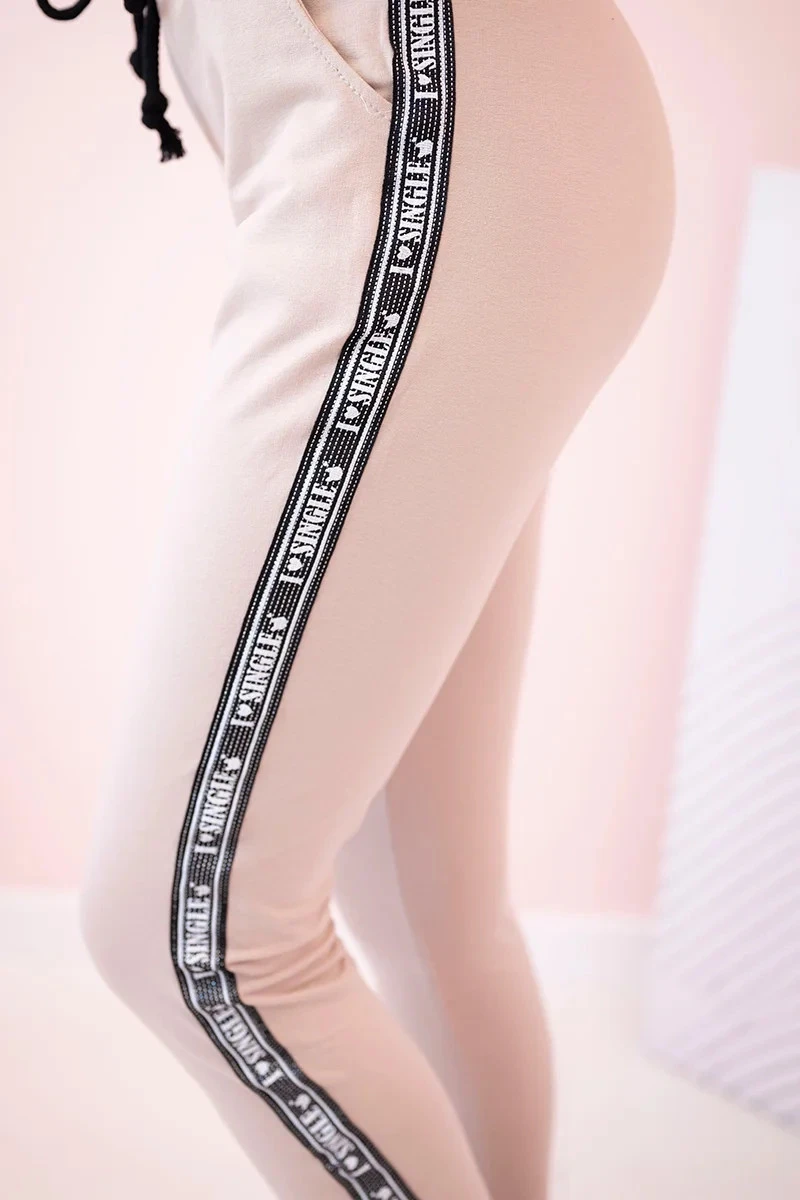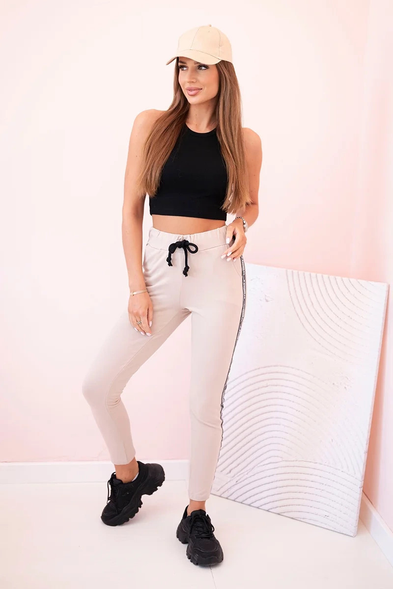 Dámské teplákové kalhoty s lampasem a šňůrkou v pase béžové