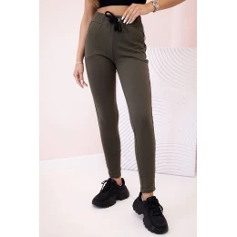 Dámské teplákové kalhoty s lampasem a šňůrkou v pase khaki