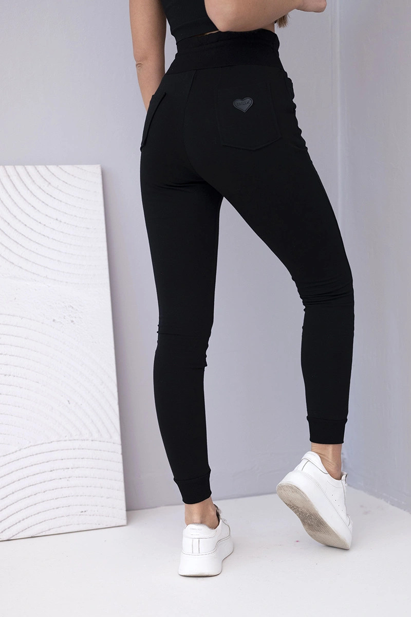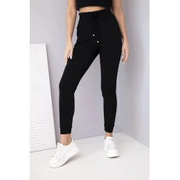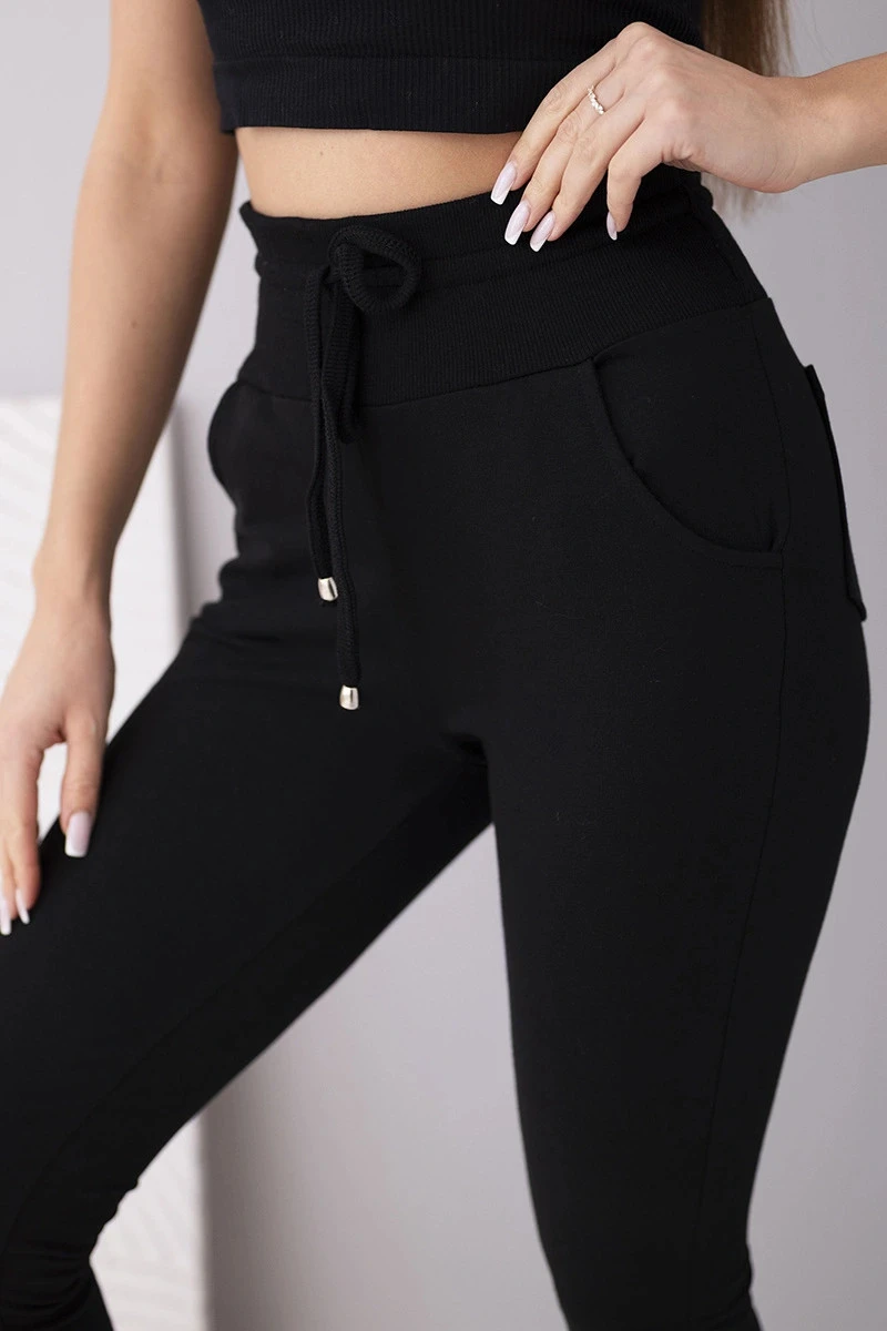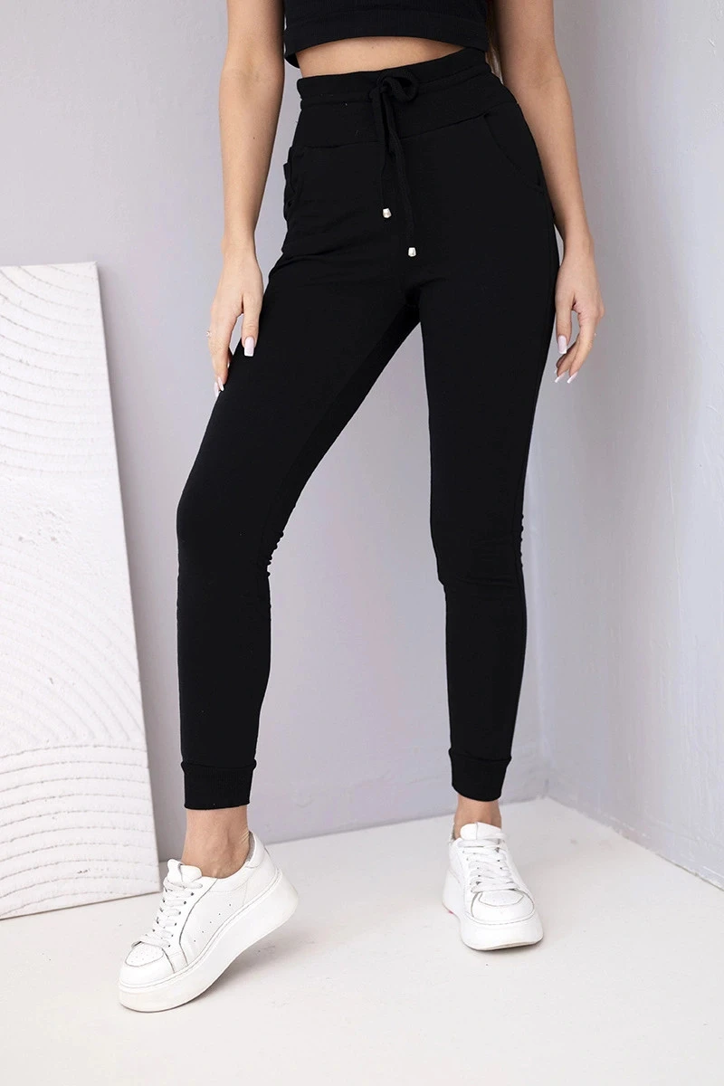 Dámské teplákové kalhoty s vysokým pasem a šňůrkou černé