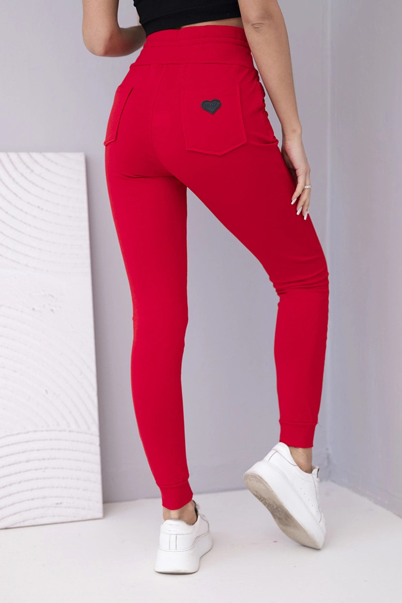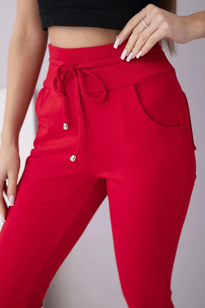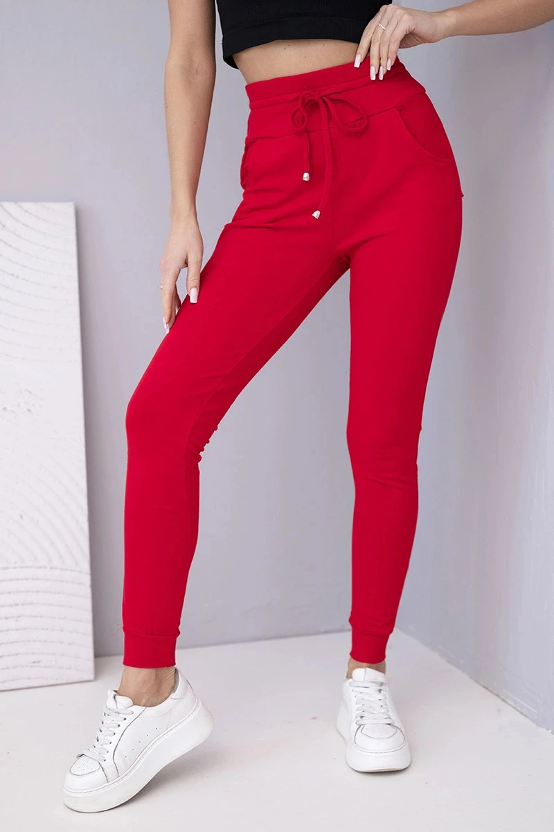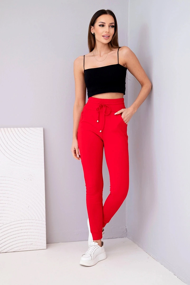 Dámské teplákové kalhoty s vysokým pasem a šňůrkou červené