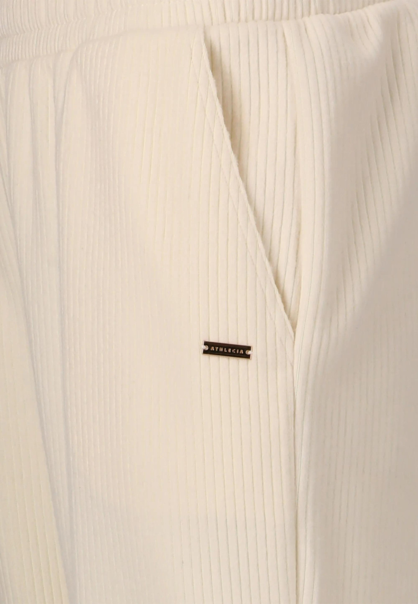 Tyto béžové dámské žebrované tepláky kombinují pohodlí s moderním minimalistickým stylem.