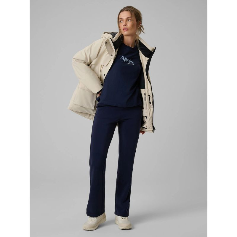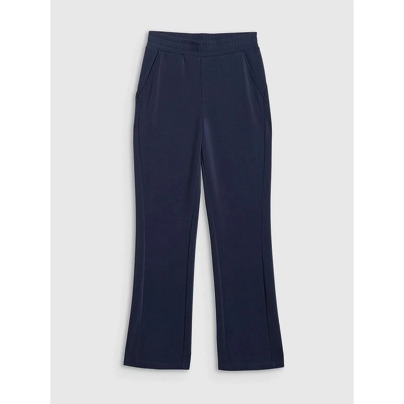 Regularny krój zapewnia wygodne dopasowanie, a wysoki stan podkreśla sylwetkę i zwiększa komfort użytkowania. Długie, proste nogawki sięgające za kostkę nadają modelowi uniwersalny charakter i sprawiają, że spodnie dobrze sprawdzają się również w chłodniejsze dni.