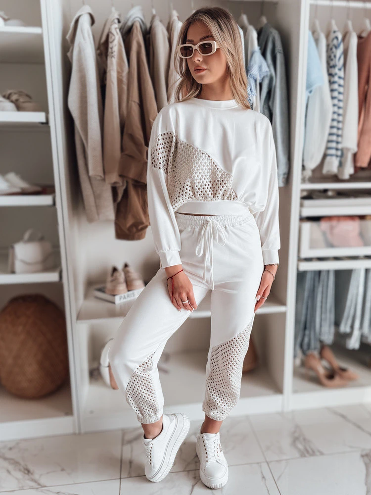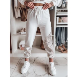 Stylové tepláky s jedinečným designem. Ažurové vsadky dodávají lehkost a jemnou eleganci, zatímco elastický pas se stahovací šňůrkou zaručuje dokonalé přizpůsobení. Žebrování na nohavicích zdůrazňuje sportovní charakter modelu a vytváří pohodlný a módní návrh pro každý den.
