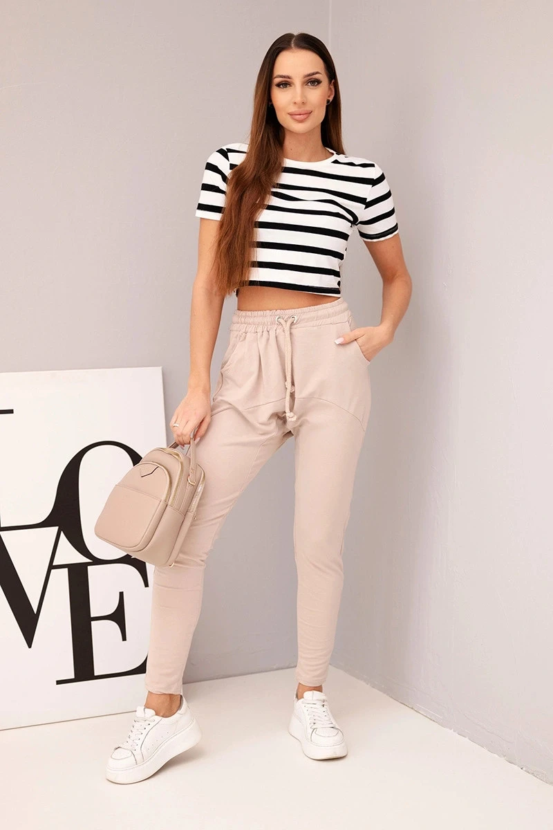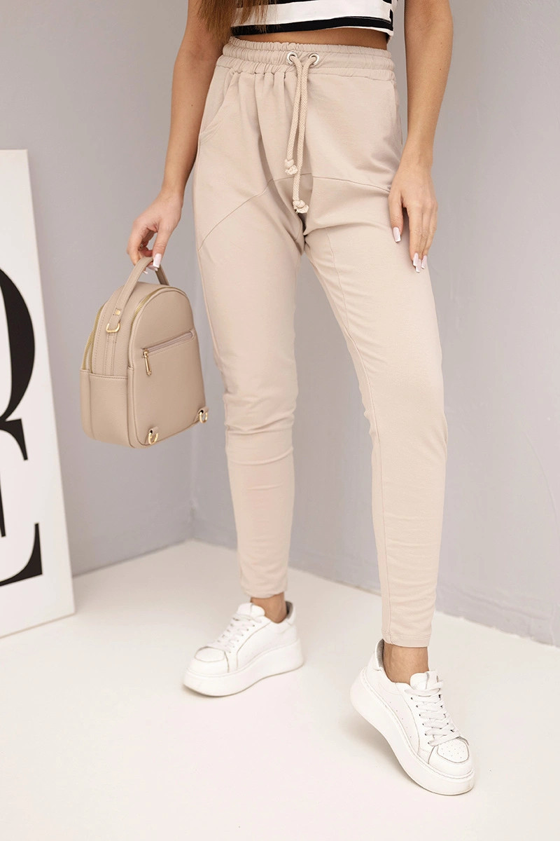 Dámské tepláky s elastickým pasem a šňůrkou béžové