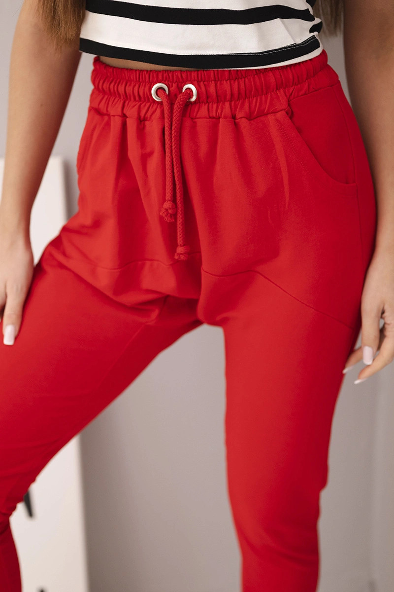 Dámské tepláky s elastickým pasem a šňůrkou červené