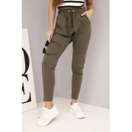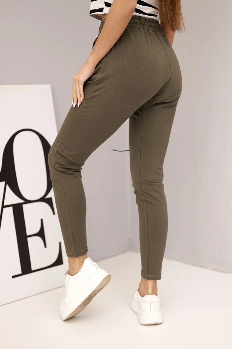 Dámské tepláky s elastickým pasem a šňůrkou khaki