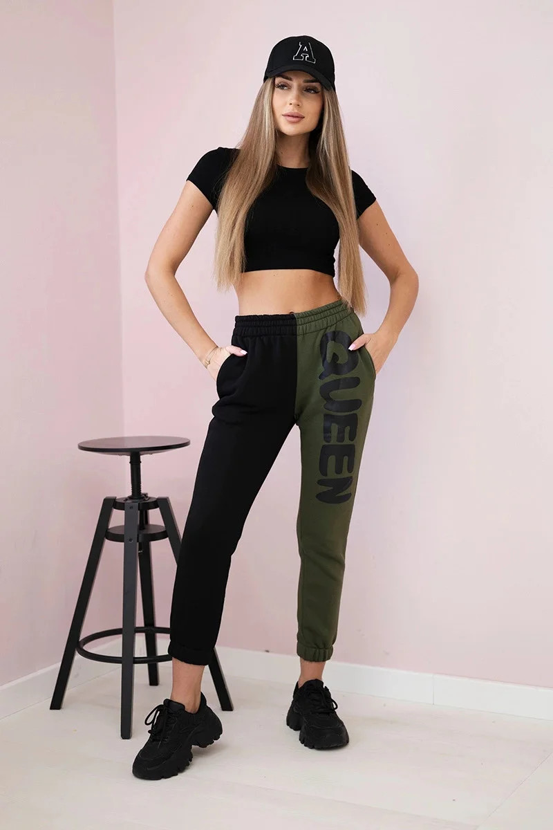 Tyto originální dámské tepláky s nápisem QUEEN jsou skvělou volbou pro ženy, které si cení pohodlí a zároveň chtějí vyniknout. Dvoubarevný design přitahuje pozornost a dodává stylizaci originální charakter, ideální jak pro každodenní nošení, tak i na neformální setkání s přáteli nebo víkendový odpočinek. Elastický pas a příjemný materiál zaručují pohodlí po celý den. Tepláky se skvěle hodí k basicovým tričkům a mikinám, vytvářející stylový sportovně-městský vzhled. Díky nápisu „QUEEN“ na nohavici se každá žena bude cítit výjimečně a sebevědomě. Velikost je univerzální a bude vhodná pro ženy velikosti S, M nebo L.