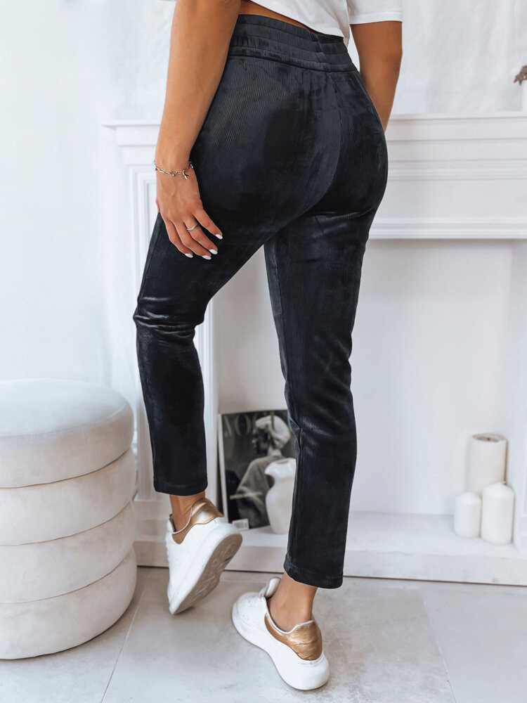 Velurové kalhoty BRENDA s žebrovanými pásky v pase a na nohavicích, které vám dokonale padnou, nesmí chybět ve vašem šatníku. Měkká velurová tkanina dodává těmto kalhotám nádech elegance, takže jsou ideální volbou pro domácí odpočinek nebo jako módní součást městského outfitu. Ať už se jedná o jakoukoli příležitost, tyto kalhoty vám zajistí pohodlí a stylový vzhled.