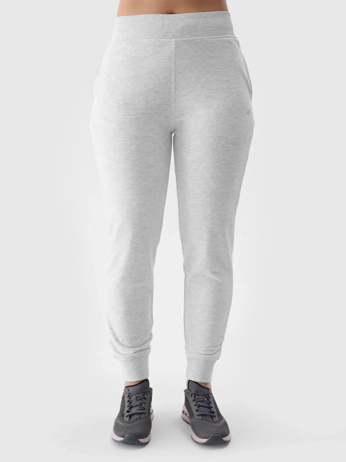 Dámské tepláky 4F jsou vyrobeny ze 79% bavlny, díky čemuž jsou měkké, odolné a příjemné na dotek. Díky přídavku polyesteru (20%) si materiál zachovává svůj střih a je odolný vůči opotřebení i po mnoho sezón. Kalhoty jsou bez podšívky, takže jsou lehčí a vhodné pro teplejší dny. Na bocích jsou 2 otevřené kapsy. Elastický pás s vnitřním nastavením na šňůrky.