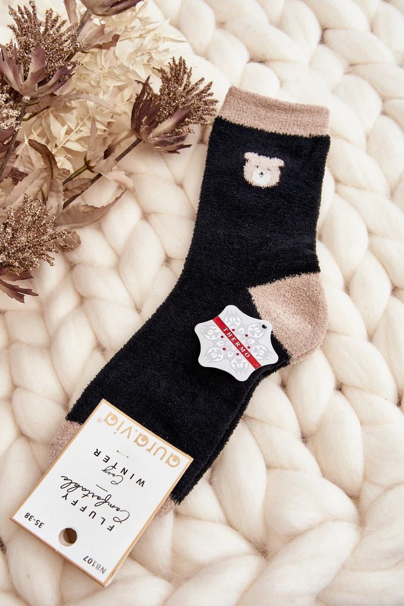 Dámské teplé ponožky s medvědem Černé