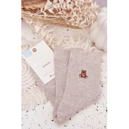 Dámské teplé ponožky s vlna a motivem medvídka – šedé