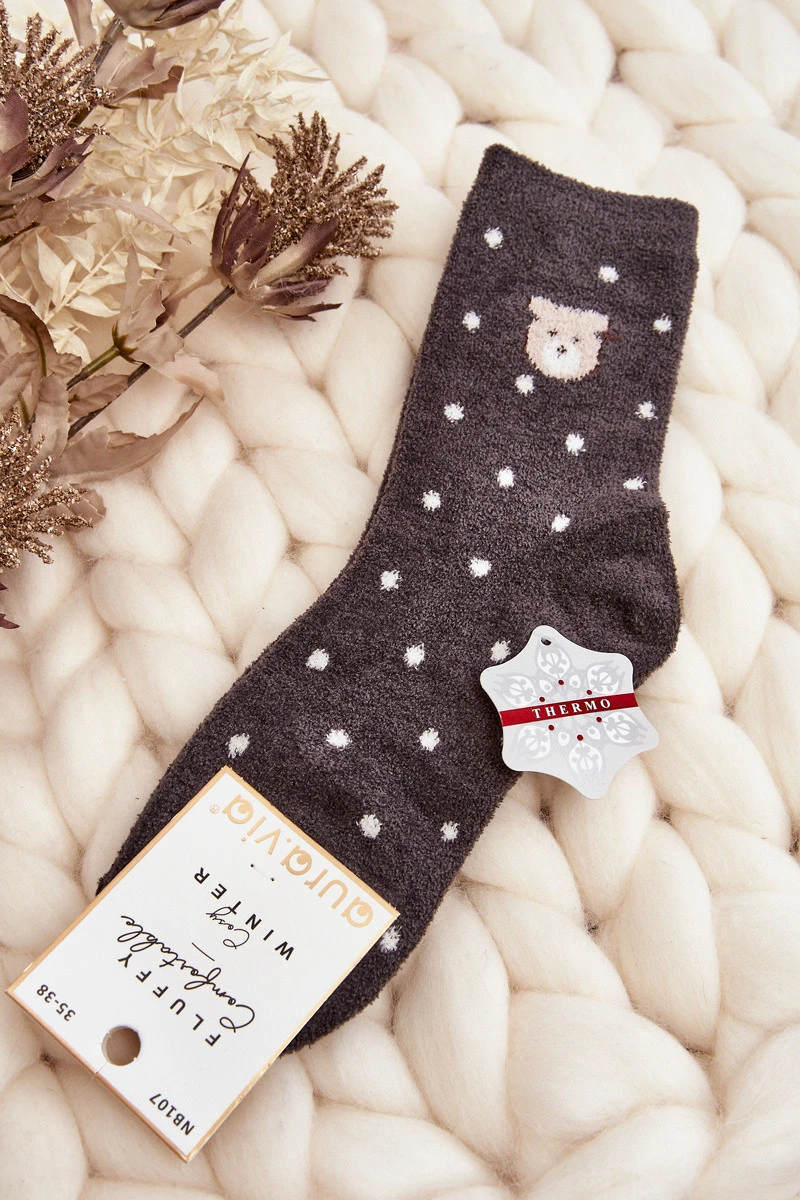 Dámské teplé puntíkované ponožky s medvídkem tmavě šedé