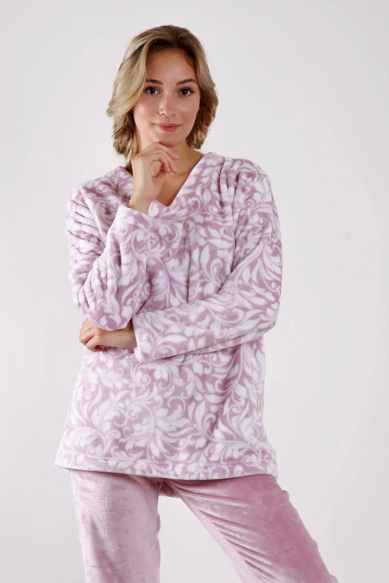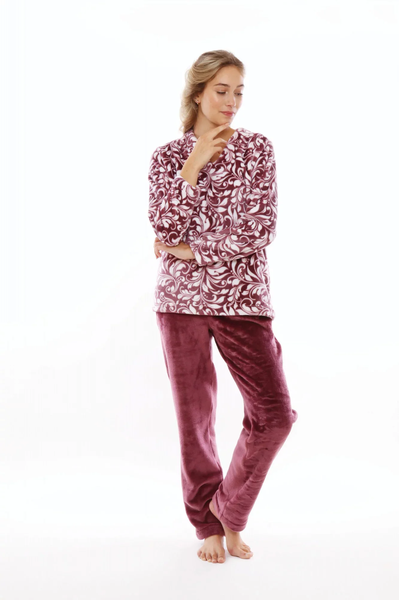 Dámský hřejivý domácí oblek - teplé pyžamo. Hedvábně jemný, příjemně hřejivý materiál flannel fleece.