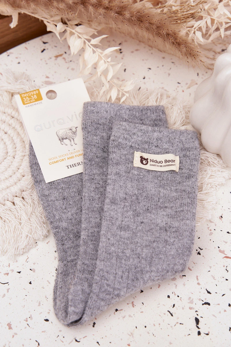 Dámské teplé vlněné ponožky s nášivkou – šedé