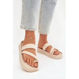 Dámské textilní pantofle s pásky a zlatým detailem světle béžové model 21918887 - Boto