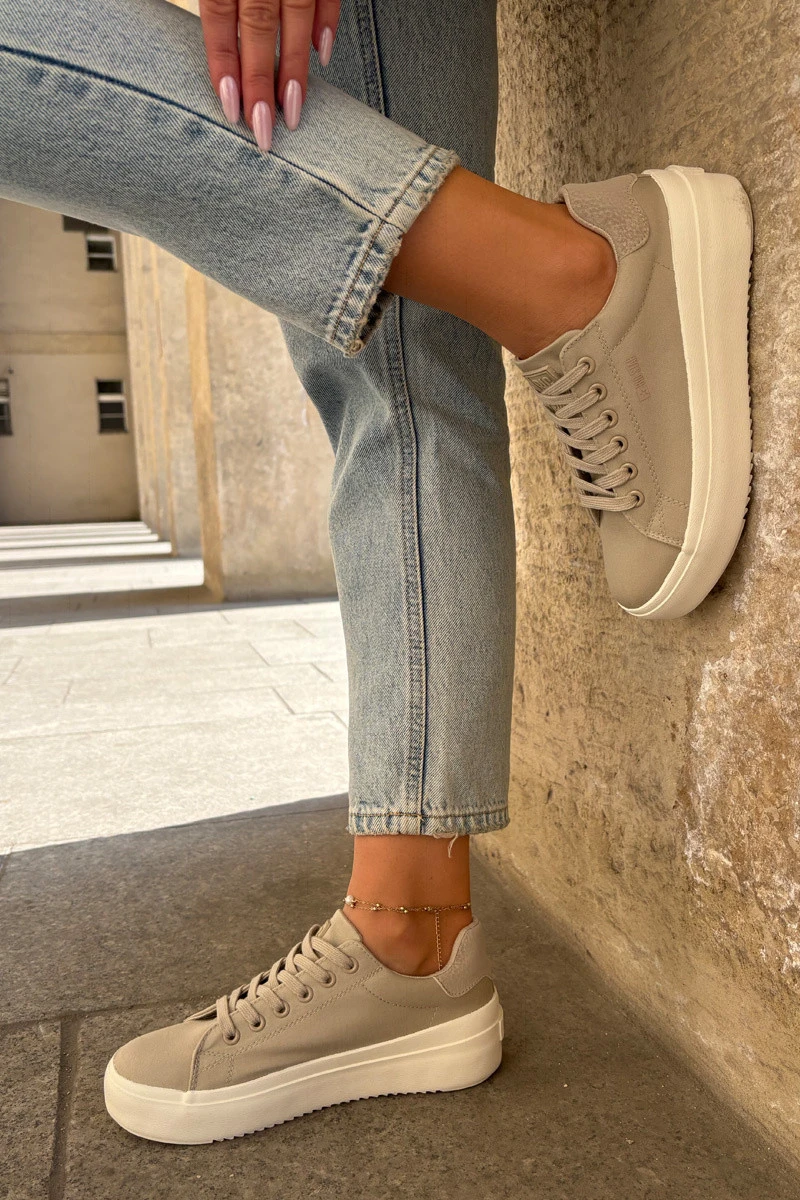 Dámské Textilní Tenisky Na Platformě Big Star RR274465 Béžové