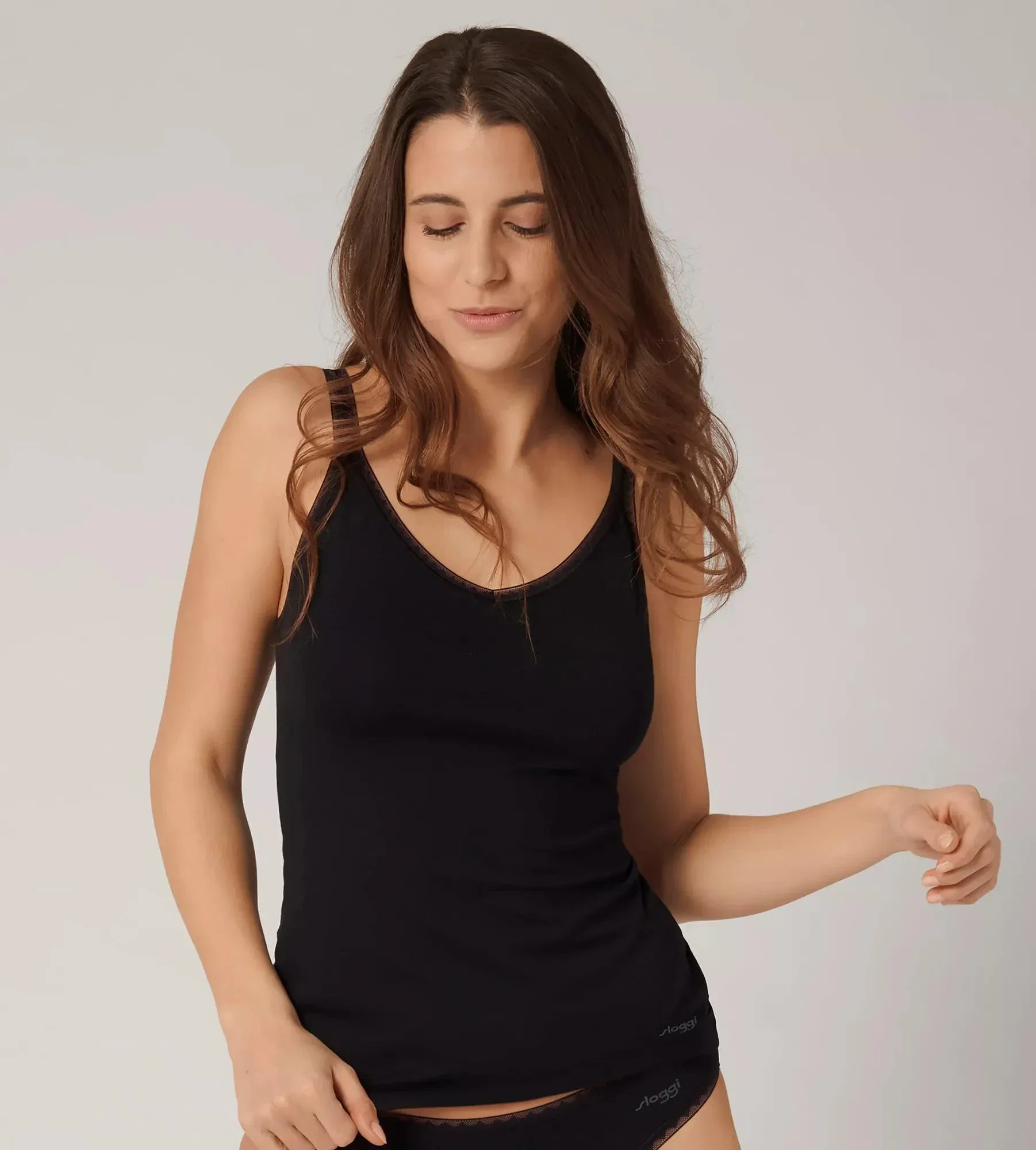 Odolné a měkké tílko sloggi GO se špagetovými ramínky s hlubokým výstřihem do V