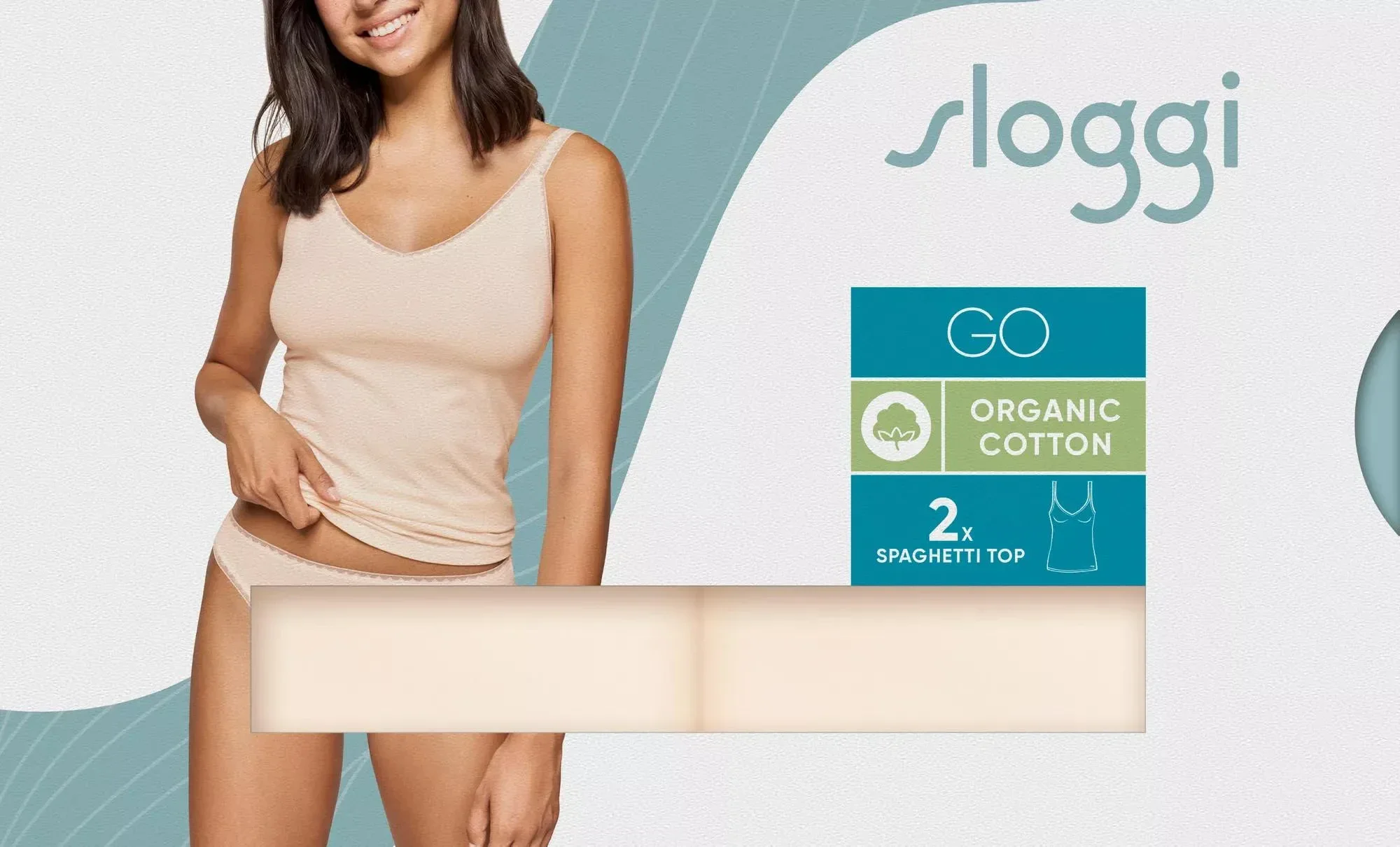 Odolné a měkké tílko sloggi GO se špagetovými ramínky s hlubokým výstřihem do V