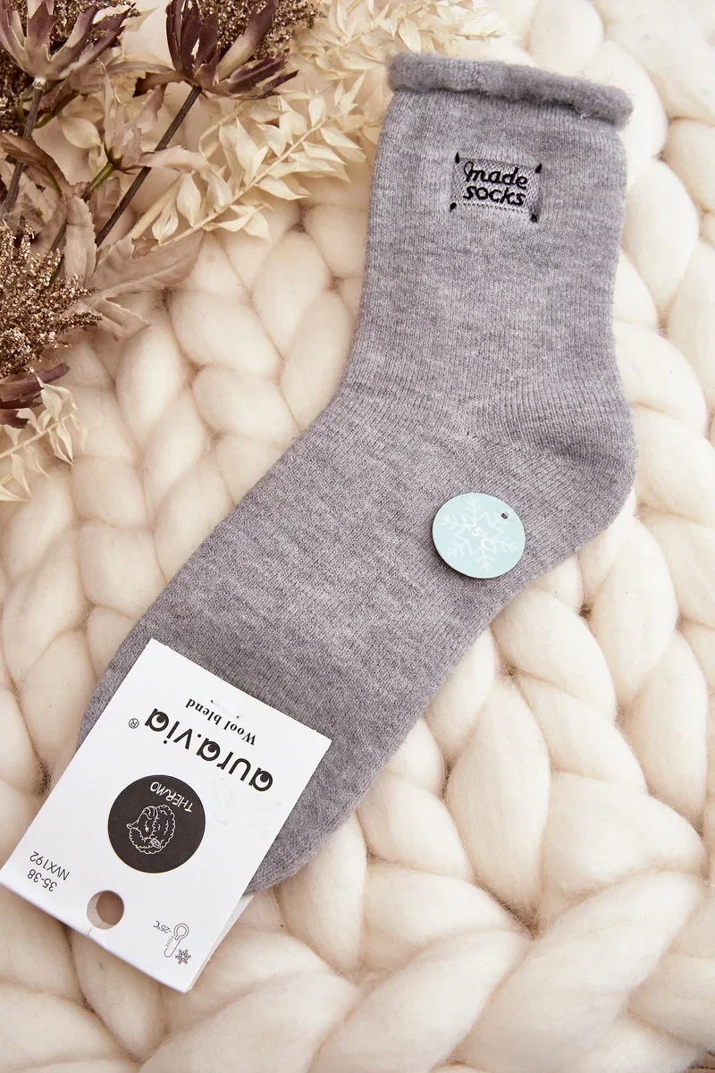 Teplé dámské ponožky, ideální do mrazivých dnů. Model s malou nášivkou. Díky lehké manžetě se perfektně přizpůsobí šířce nohy. Rozhodně byste je měli mít!